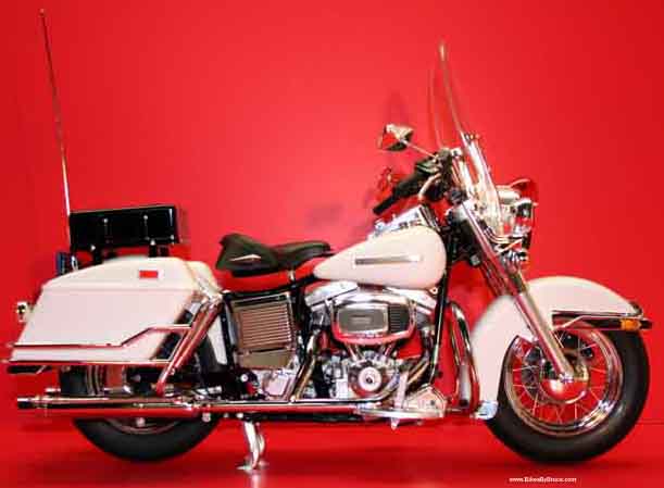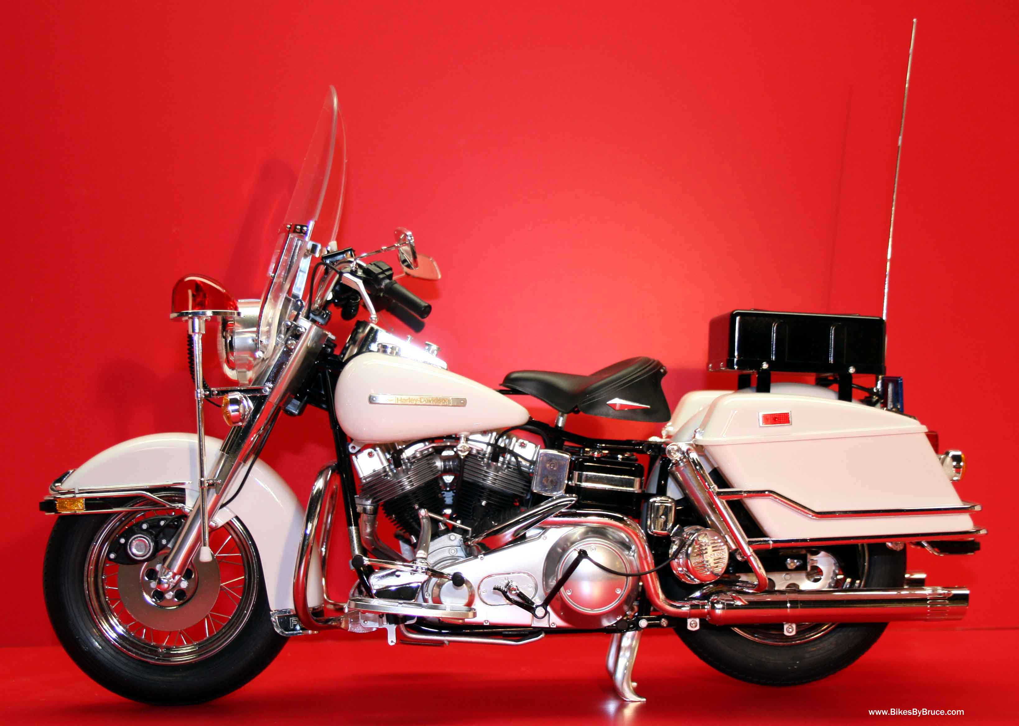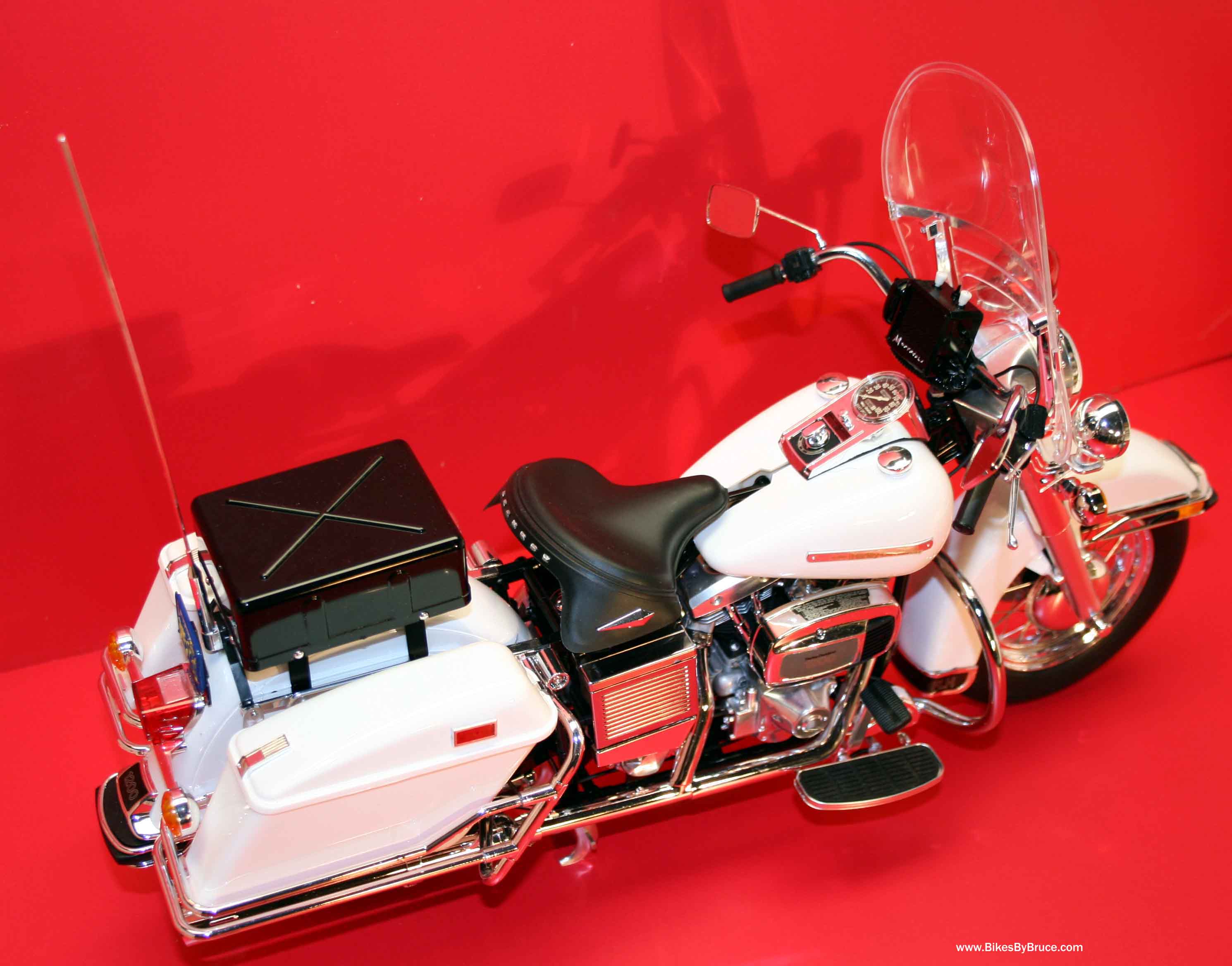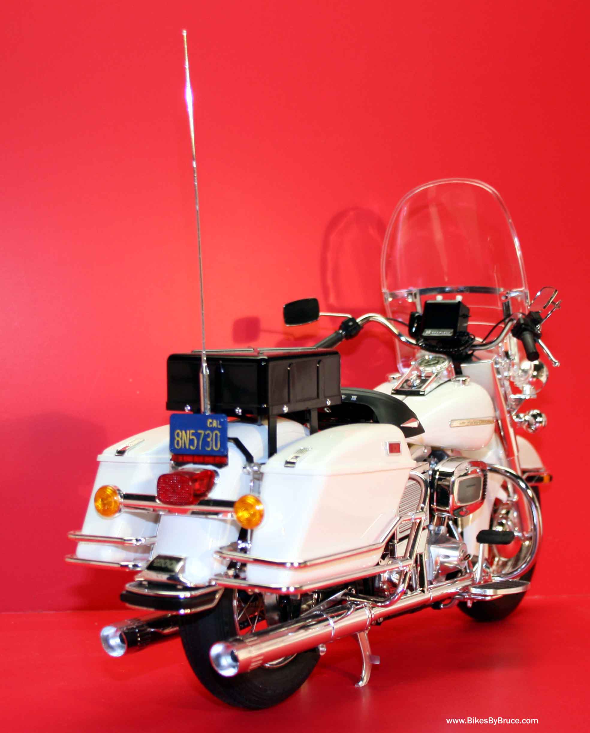 Just a super fun build from beginning to end. The custom addition of piano wire spokes help add realism. The wire used for the Motorola police radio is one strand of phone wire that has been wrapped around a small screwdriver. Chrome bare metal foil is used to add a finishing touch to the windscreen brace that just cannot be accomplished with regular paints.